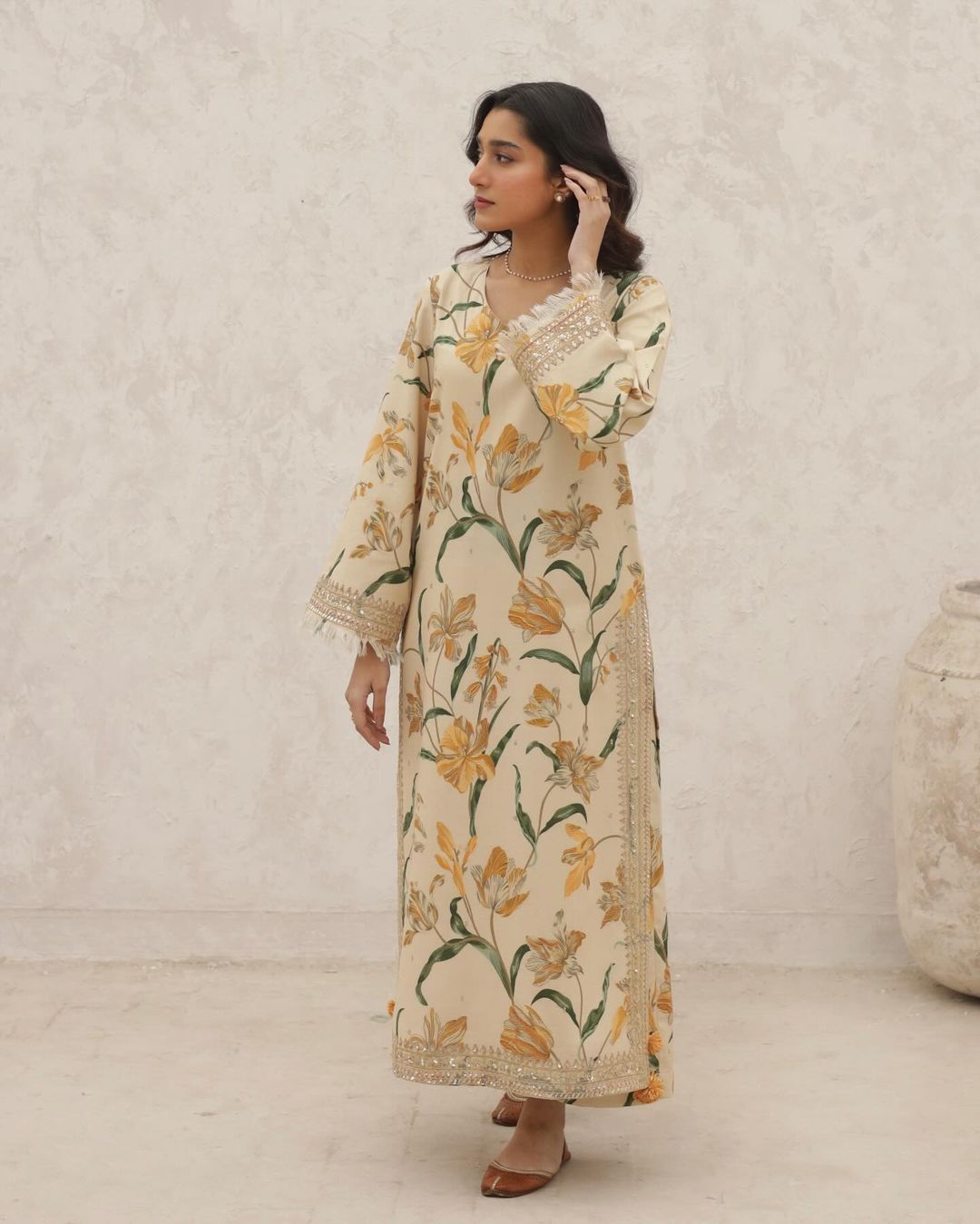 Embrace the vibrant charm of Pearly Bloom, a chic 2-piece suit crafted from premium LAWN fabric Expertly crafted with delicate embroidery on the side hems and sleeves. The rich material ensures comfort and STYLE, making it perfect for WARMER days. With its bold hue and classic design, Pearly Bloom effortlessly combines elegance and comfort, ideal for both casual outings and semi-formal gatherings.